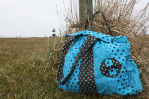 Aus mehrern Bahnen von festen Baumwollstoffen wird eine Patchworkfläche genäht die dann zu einer trendigen farbenfrohen Tasche wird.