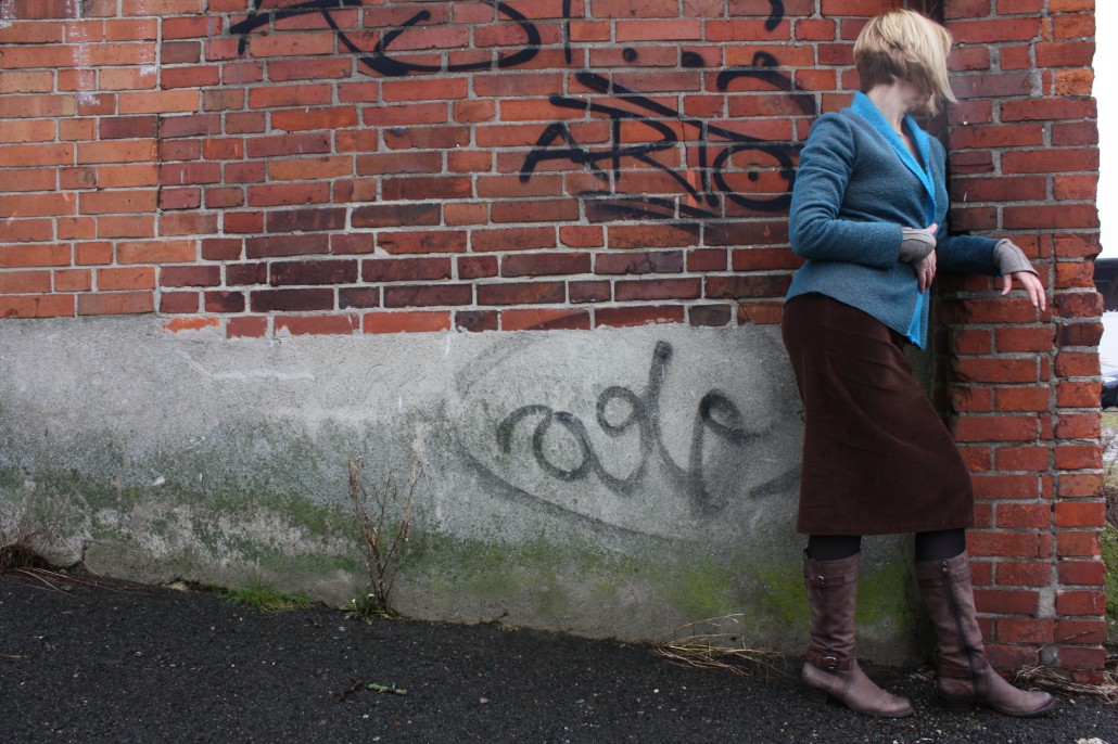 Ich liebe Stoffe mit hohem Stretchanteil , wie diesen schokobraunen (mit hohem Kakaoanteil :-)) Mit dem Baumwollcordstoff ließ sich mein Latino-Po hervorragend umkleiden. Auf einen angeschnittenen Bund habe ich verzichtet, um mehr Bequemlichkeit am Bauch zu erzielen. Da drückt nun nichts mehr! Der schmale Rock kommt auch sehr gut zu locker blusigen Oberteilen, die dann die leichten Rundungen am Bauch herrlich überspielen. Die Länge des Rockes bis auf die Waden ist super für Businesstermine. Zum Paar-Tanzen mit dem Liebsten ist er nicht so optimal- normales Gehen ist aber super möglich, da er hinten eine große Kellerfalte hat!